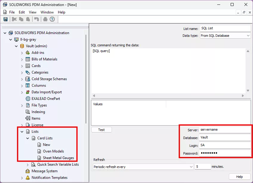 If you utilize SQL Card lists, you’ll also want to go into theAdministrationtool underLists>CardListsand update the credentials there if you’re using the SA account to connect.