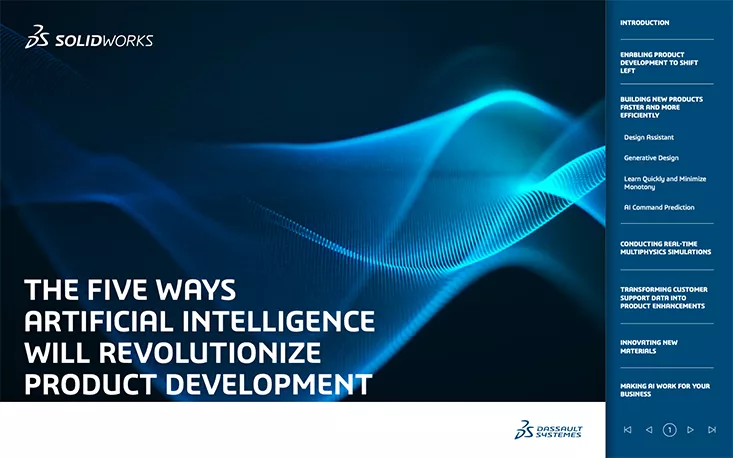 Artificial Intelligence has moved beyond the ideation phase and into the mainstream. AI-powered design tools will revolutionize how we approach product development. Are you ready to take advantage? Read this eBook to learn five ways AI is going to change the way we develop, manufacture, and support products.