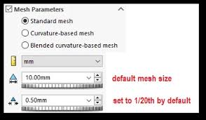Jul 19, 2021 ... In SOLIDWORKS Simulation, the default mesh size is the value that is initially assigned to the Global Size field of the Standard Mesh and ...